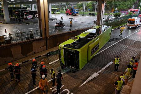 In photos and videos shared by stompers, one of the buses was lying on it side. Singapore — a collision between two buses at bukit batok interchange on sunday (july 11) afternoon injured 17 people, leaving one of the buses lying on its side after it plummeted 2m. In a post on its facebook page on sunday night, the singapore civil defence force (scdf) said its personnel assessed 17 persons for injuries. Quickly go down to bukit batok bus interchange. An operator spokesman told the straits times that 16 people were involved in the crash: